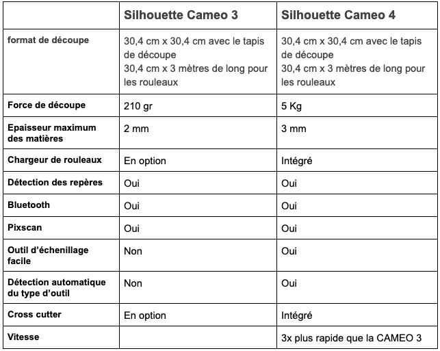 Comparatif entre la Silhouette Cameo 3 et la silhouette Cameo 4