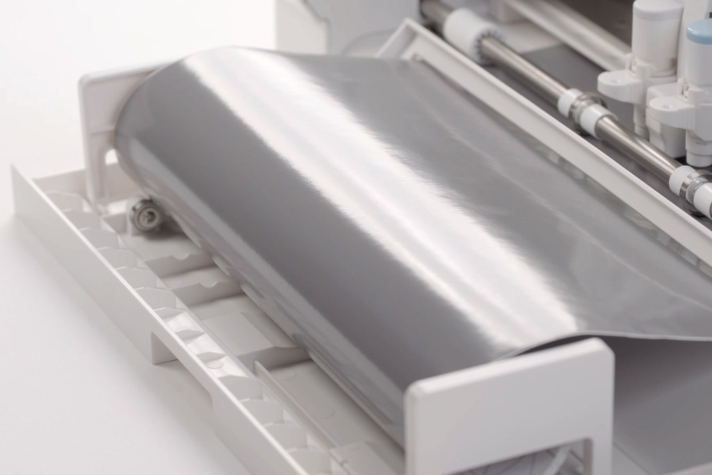 5- Un Roll-Feeder intégré. C’est un support qui maintient les rouleaux de vinyle ou de transfert textile pendant les découpes.
