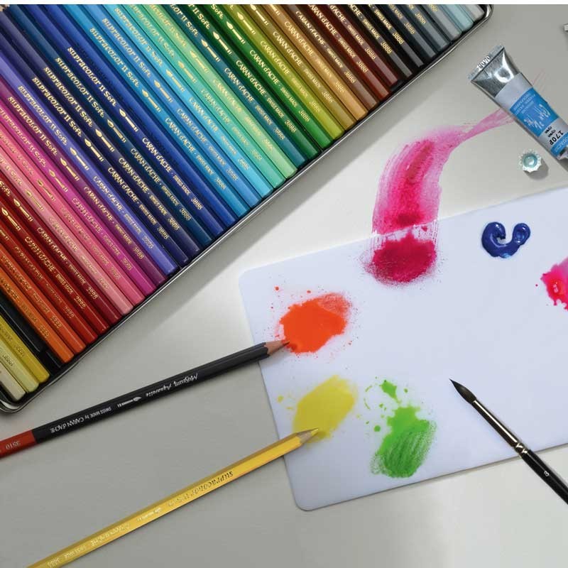 Caran d’Ache propose la gamme de crayons de couleur Supracolor, à la mine tendre et résistante