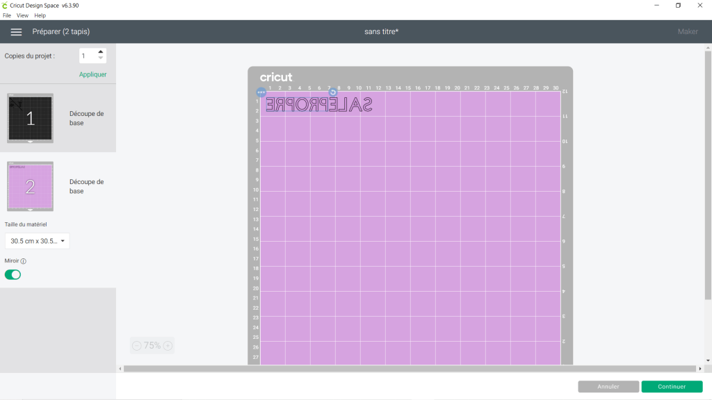 Sélectionnez l’option « Miroir » pour les deux tapis puis cliquez sur « Continuer ».
