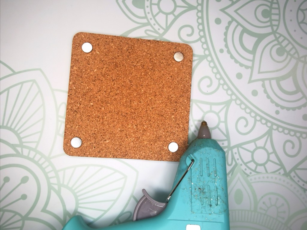 Avec le pistolet, collez les aimants au dos du sous-verre.