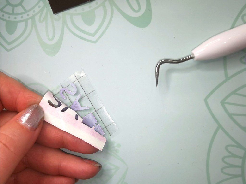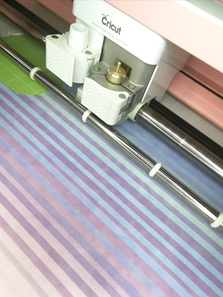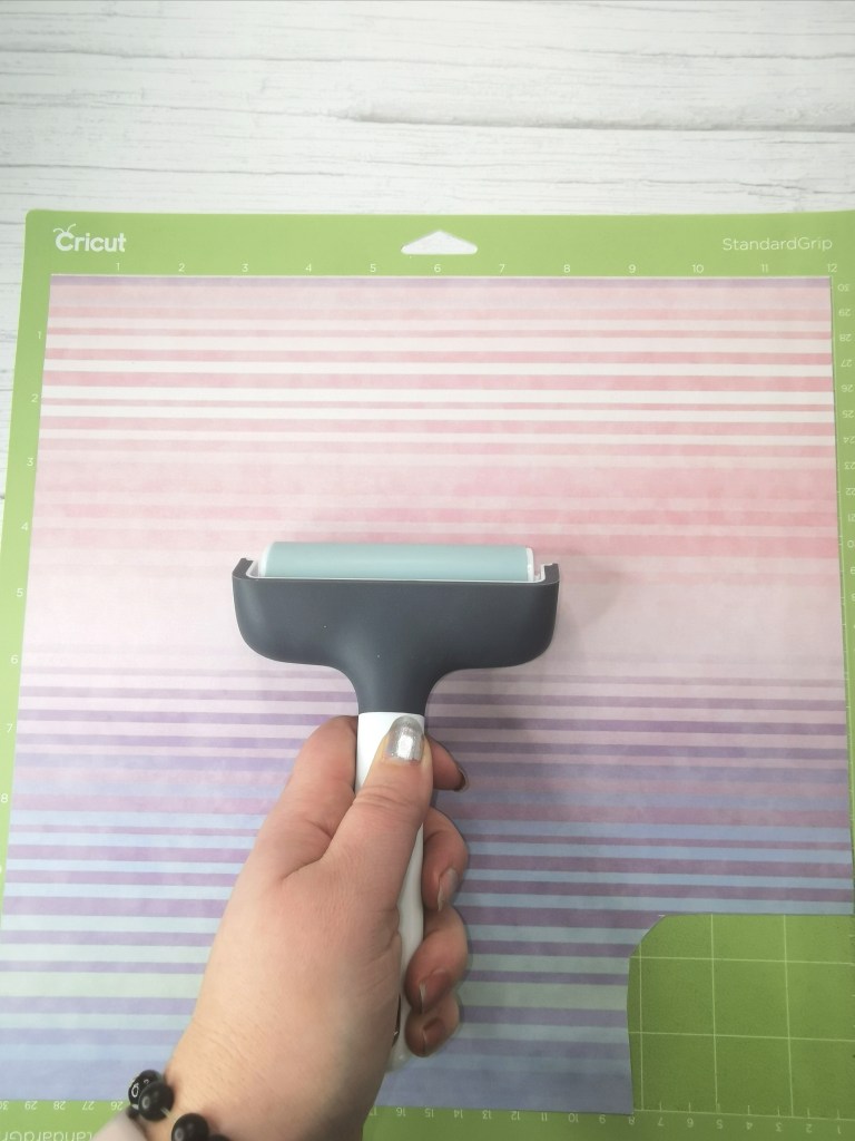 Collez votre feuille d’Infusible Ink sur votre feuille de transport (vous pouvez utiliser le rouleau applicateur pour que la feuille adhère parfaitement au tapis) puis lancez la découpe. Procédez de la même manière pour les deux feuilles.