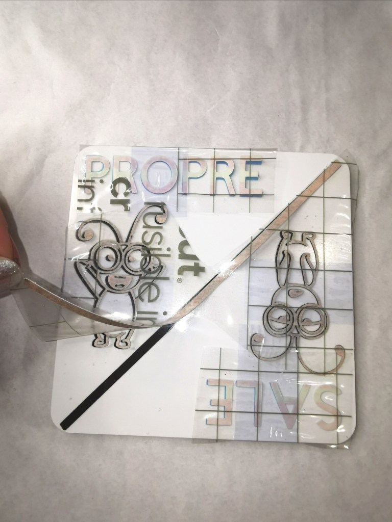 Sur votre tapis de chauffe, positionnez le sous-verre, recouvrez-le d’un papier sulfurisé (fourni avec l’Infusible Ink), puis chauffez.