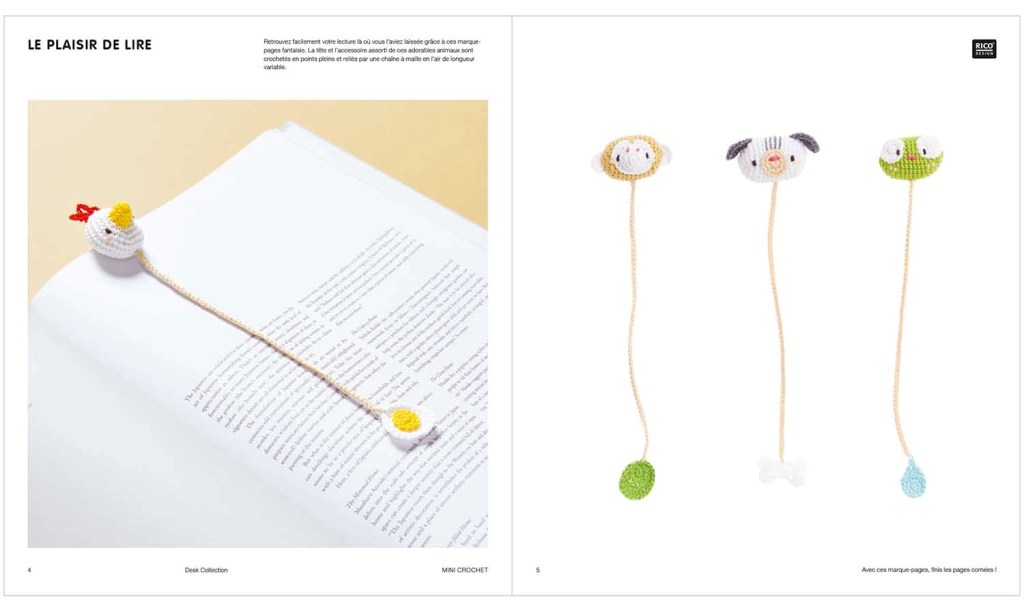 Chaque modèle est confectionné avec le fil de la gamme Essentials Crochet de Rico Design et expliqué en détail avec les fournitures nécessaires, les points employés et les différentes étapes
