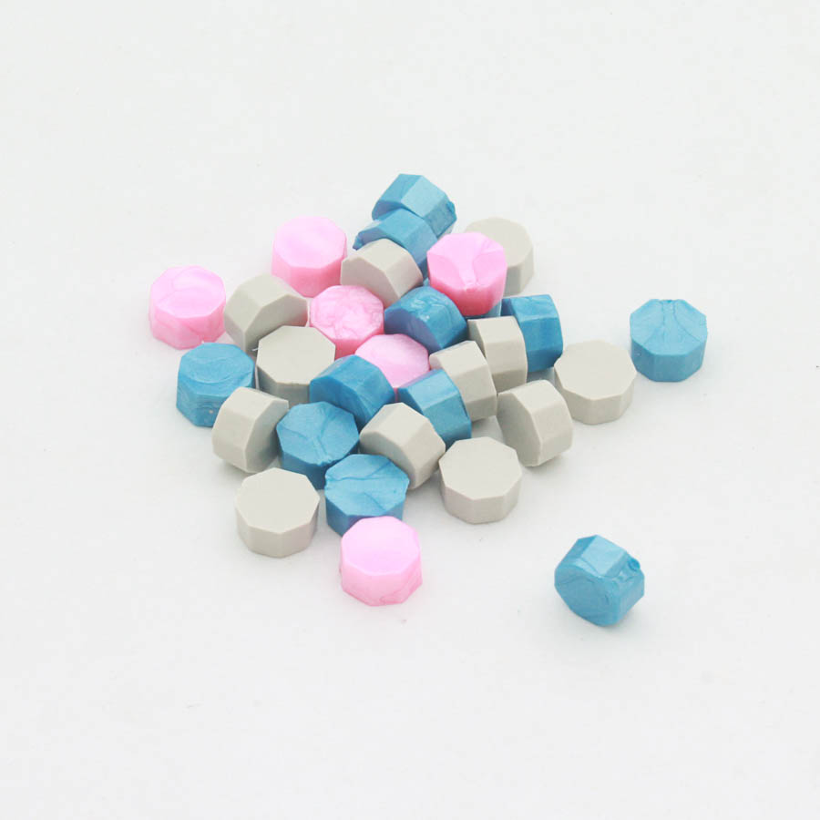 Dans un sachet, il y a 100 pastilles de différentes couleurs qui vous permettront de réaliser 50 cachets de cire de 2.5 cm de diamètre environ