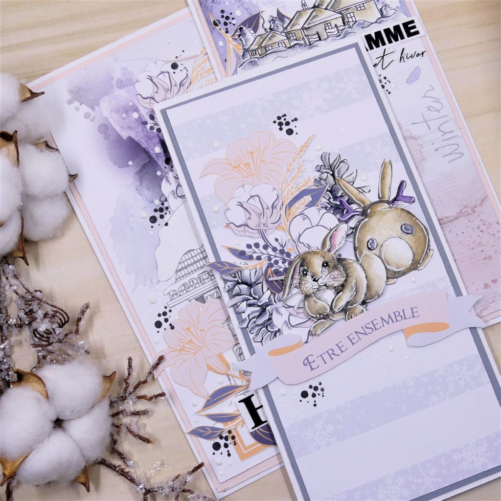 La collection se compose de 6 papiers recto verso vendus seuls ou par packs collection + Tags, 8 planches tampons clears format A6, des planches étiquettes à découper et 4 badges