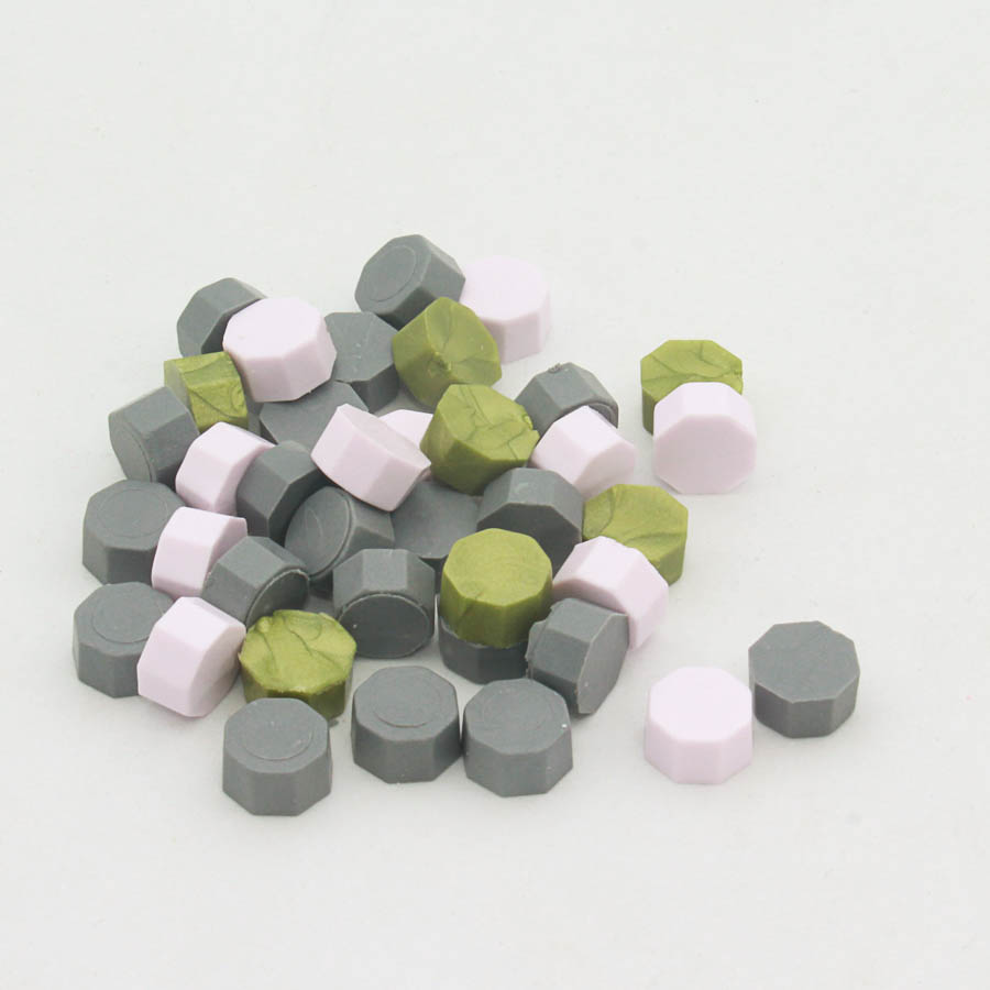 Dans un sachet, il y a 100 pastilles de différentes couleurs qui vous permettront de réaliser 50 cachets de cire de 2.5 cm de diamètre environ