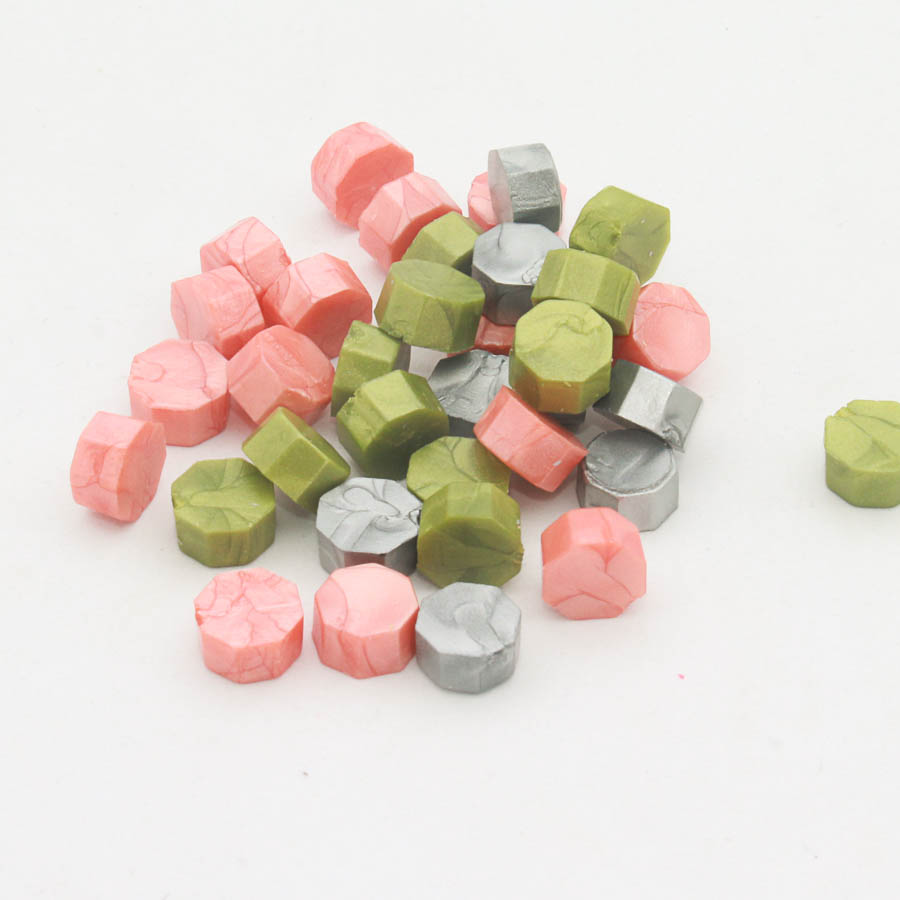 Dans un sachet, il y a 100 pastilles de différentes couleurs qui vous permettront de réaliser 50 cachets de cire de 2.5 cm de diamètre environ