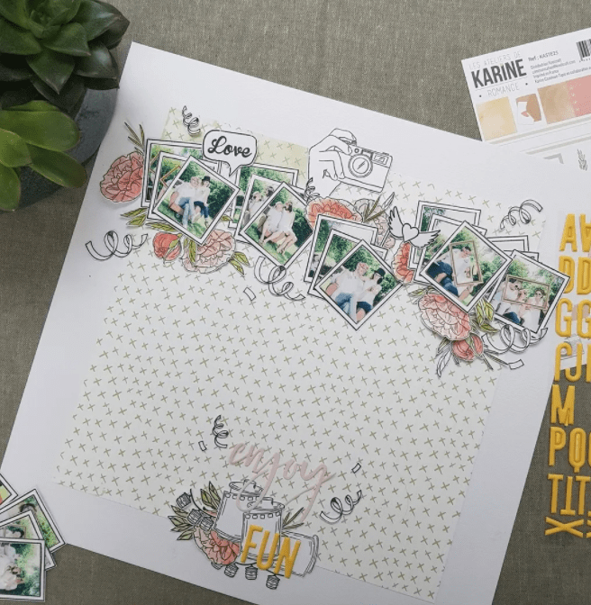 La 25ème collection des Ateliers de Karine se compose d’un pack papiers et de ses unis, de planches autocollantes, die cuts papiers et calque, alphabets, pochoirs broderie et classiques, matrices de découpes, tampons clears et bois