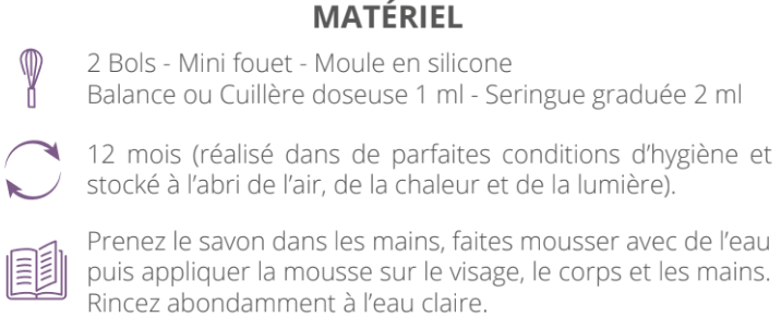 à partir d’une base savon Melt & Pour 100% naturel, il offre une mousse