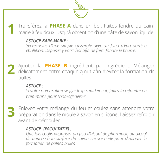 Suivez attentivement la phase A et B pour réaliser ce savon: