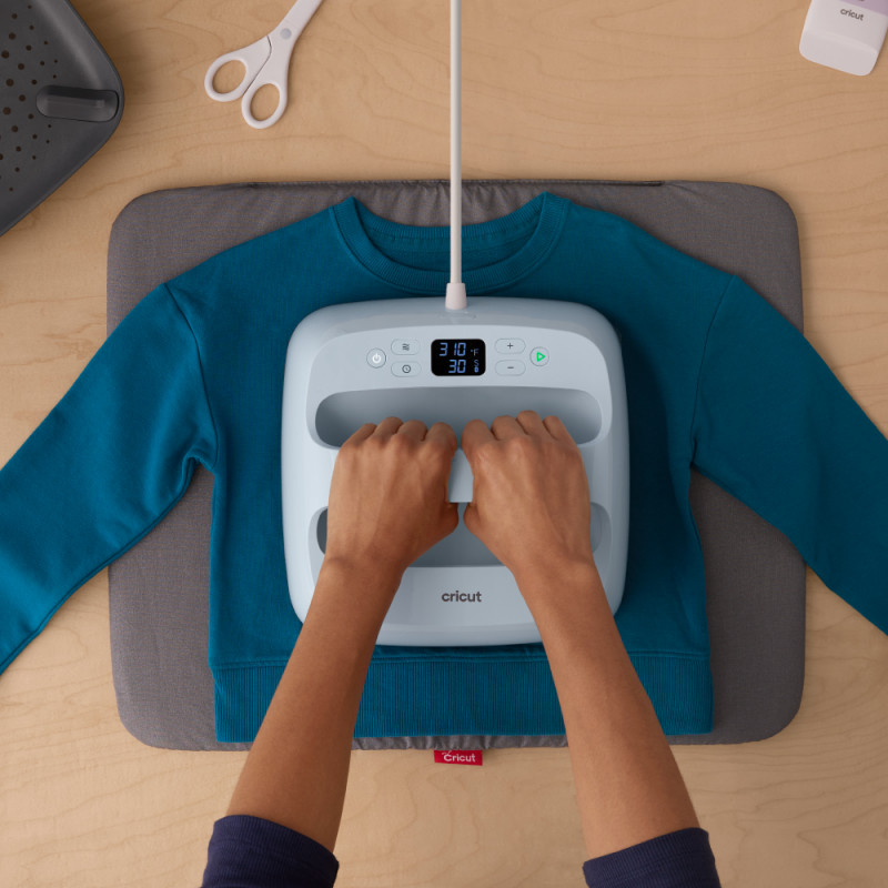 Pressez sans approximations et réalisez des transferts facilement et rapidement. Transmettez simplement la durée et la température idéale par Bluetooth depuis l’application Cricut Heat d’un simple geste.