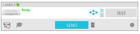 Si ce n’est déjà fait, ouvrez Silhouette Studio®. Accédez à l’onglet « Envoyer » (situé dans le coin supérieur droit du logiciel) pour ouvrir le panneau Envoyer. Vérifiez que votre machine est connectée et affiche le statut « Prêt »