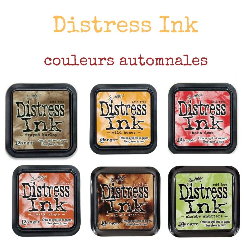 Nous vous mettons ci-dessous nos encres Distress Ink dans les tons automnales.