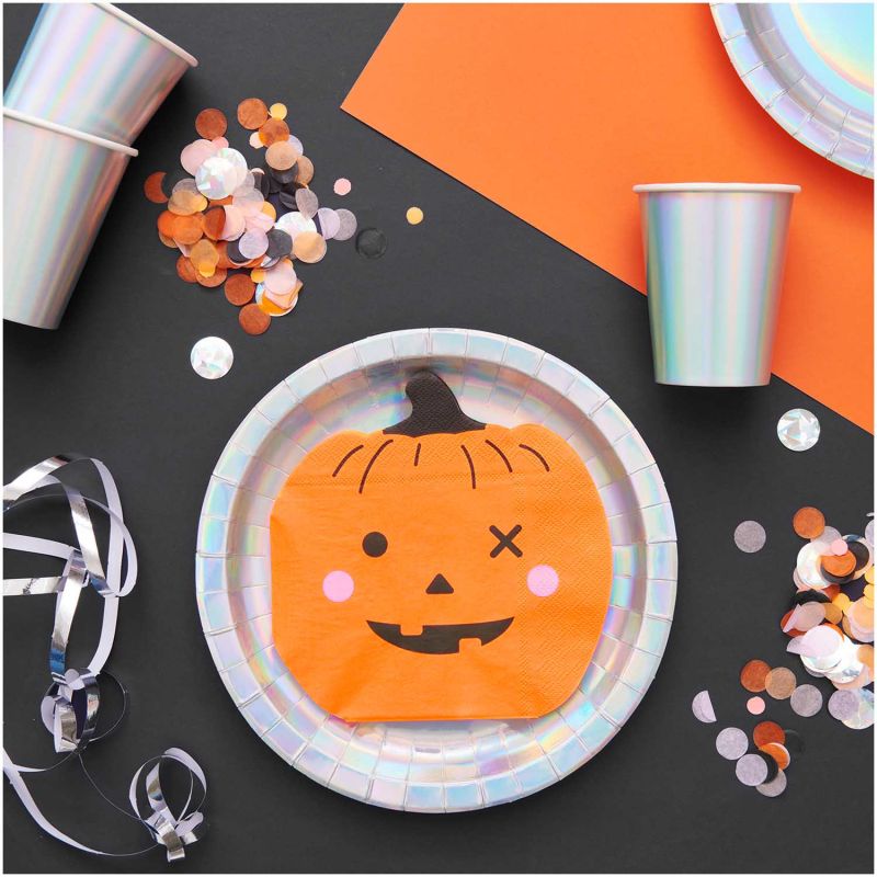 Pour le goûter d’Halloween, pensez à la décoration de votre table, c’est très important! Nous pouvons vous aider à réaliser une table avec d’adorables serviettes en forme de citrouilles. Ces serviettes peaufineront votre déco. Vos enfants en seront éblouis!