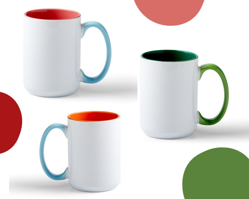 Les nouveaux mugs biseautés en céramique ‘Cricut’ sont disponibles en trois couleurs sur notre site.