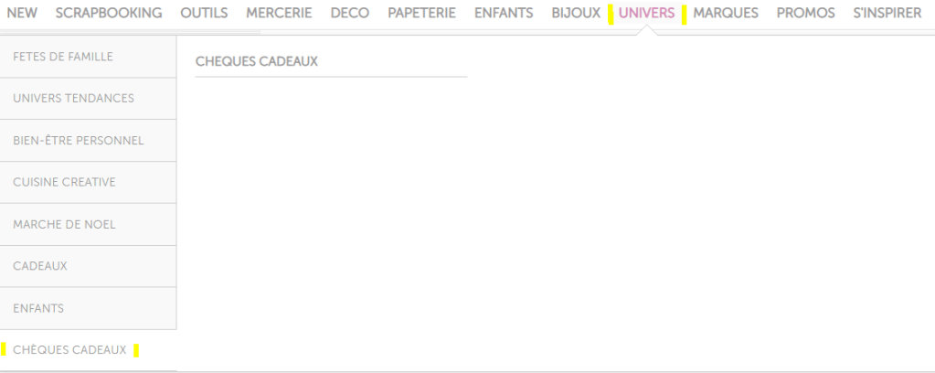 Cliquez sur « Univers » puis « Chèques cadeaux«