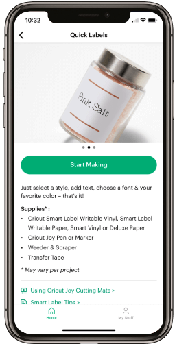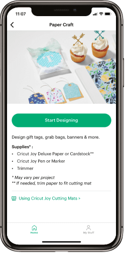 Ce sont les utilisateurs de la Cricut Joy qui peuvent se servir de cette application. Grâce au pas-à-pas guidé avec des étapes simples, vous pourrez réaliser des cartes, des étiquettes personnalisées, des stickers et bien d’autres choses en seulement quelques clics. Le logiciel gratuit Design Space® est toujours votre point de référence pour les fonctionnalités de conception avancées ou pour créer des projets nécessitant plusieurs matériaux et superpositions.