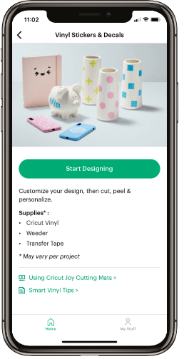 Décorez des gourdes, ordinateurs portables, mugs, fenêtres, coque de téléphone… tout ce que vous voulez. Choisissez parmi la bibliothèque d’images disponibles, demandez à votre Cricut Joy de découper votre dessin, échenillez-le et collez-le où vous voulez ! C’est aussi simple que ça.