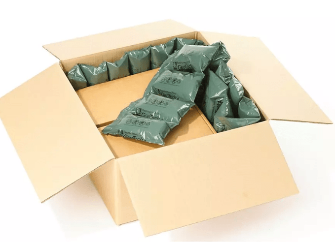 Pour l’emballage de nos colis, nous n’utilisons plus de rembourrage classique mais des coussins d’air recyclé. Les coussins d’air calent et remplissent les vides dans les boîtes et les colis pour protéger les produits durant le transport. Ils sont recyclables et c’est ça qu’on aime!
