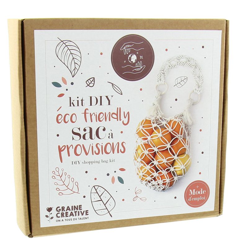 Le kit DIY éco friendly Sac à provisions, quant à lui, permet de réaliser soi-même un sac de courses en coton