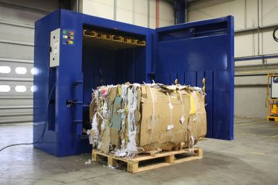 Nous recyclons tous nos cartons grâce à une presse à balle. Cela sert à compacter nos déchets recyclables. Elle a été conçue dans le respect des normes sécuritaires et environnementales les plus exigeantes: