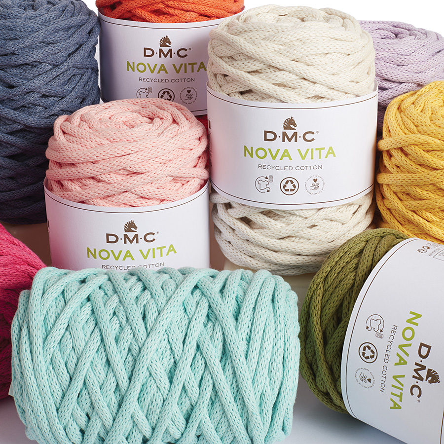 La gamme Nova Vita de DMC que nous proposons sur notre site est une laine tubulaire recyclée: elle est composée de chutes de tissus transformés et colorisés