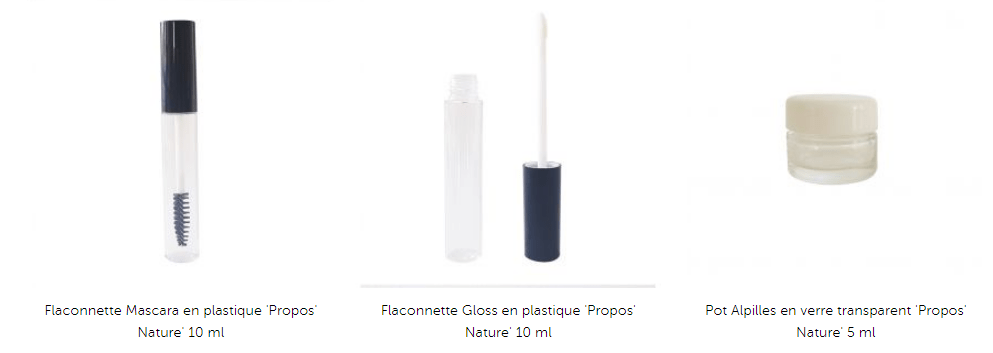Vous trouverez également un large choix de contenants à prix tout doux pour vos soins, crèmes, gloss, mascara etc…