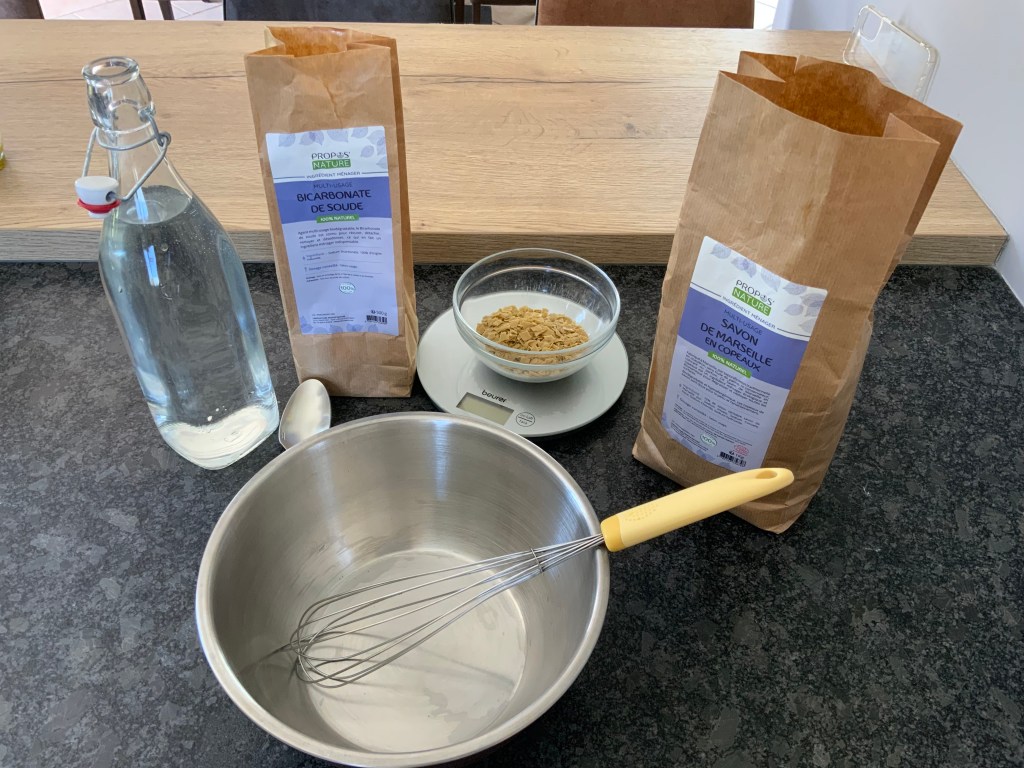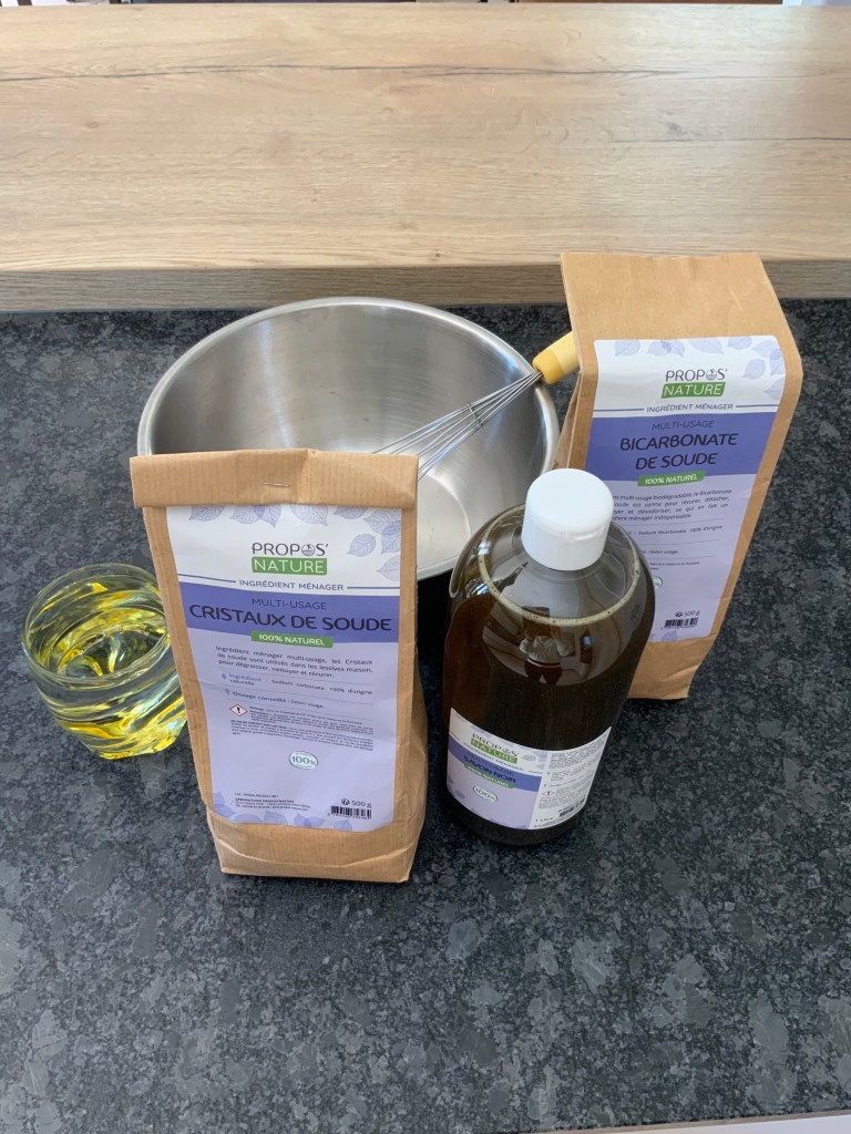 Nous vous mettons le lien de notre savon de Marseille en copeaux que nous avons utilisé pour la réalisation de la recette qui est de la marque Propos’ Nature.
