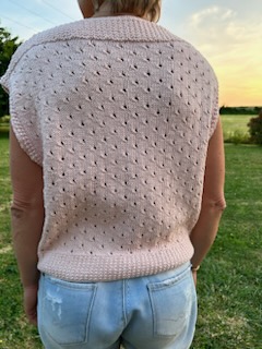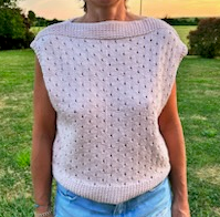 Pour l’été, nous avons confectionné un petit top sans manche en laine, couleur rose poudré! Il sera parfait pour être porté avec un pantalon fluide ou un short en jean