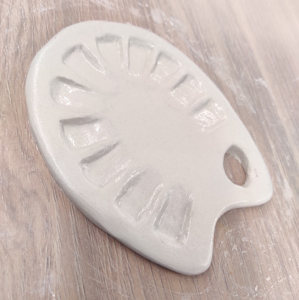 3. Vous devez creuser votre palette pour pouvoir placer votre peinture une fois que celle-ci sera sèche. Nous avons utiliser les instruments de sculpture ‘Creativ Company’