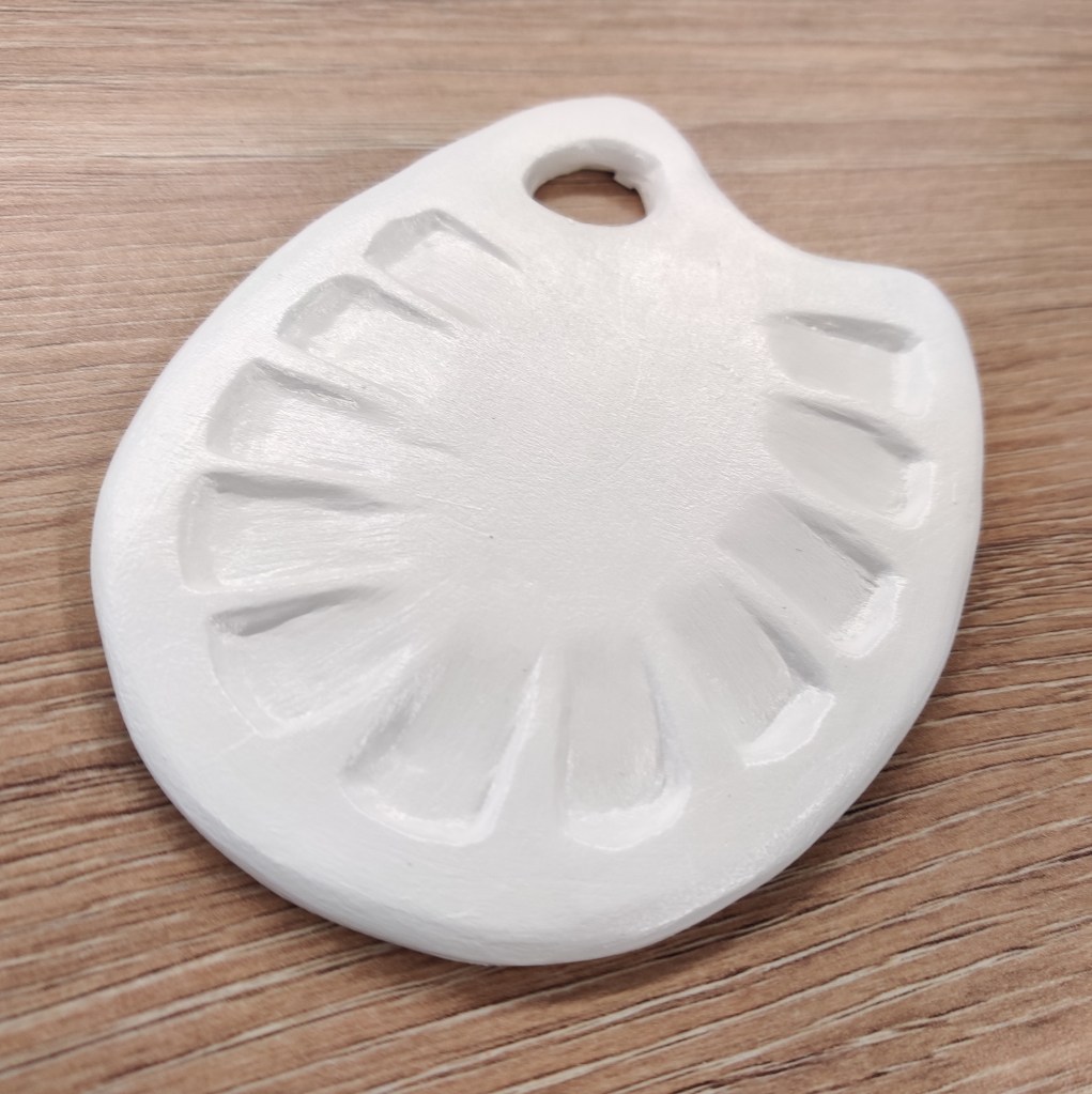 6. Une fois sèche, la pâte DAS devient « blanche » comme sur l’image ci-dessous. Vous n’avez plus qu’à la poncer et la vernir de gesso. Votre support sera moins poreux, plus clair et plus rigide pour une meilleure application de votre peinture.