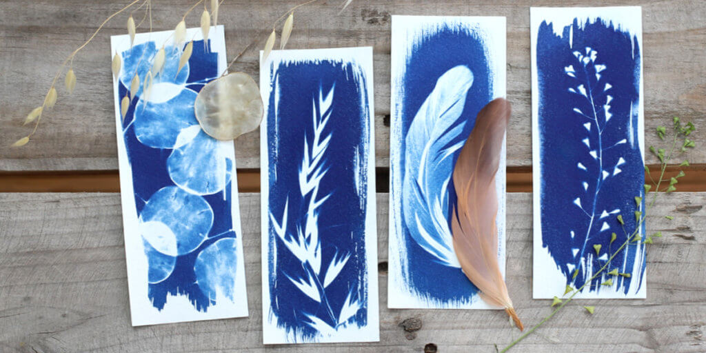 Cette activité créative est souvent une animation artistique que l’on fait sur du papier, à l’aide de feuilles d’arbres (fraîche ou séché), avec les enfants, qui permet d’obtenir des motifs en monochrome de bleu de Prusse (cyan) à l’aide du soleil.
