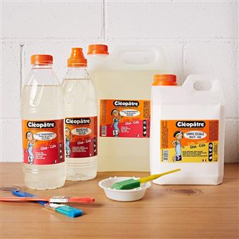 - Colle Blanche Vinylique : C’est le produit iconique de Cléopâtre. Reconnaissable à son bouchon orange, cette colle est appréciée pour son efficacité et sa polyvalence. Elle est idéale pour les travaux manuels, les collages de papier, carton et bois.