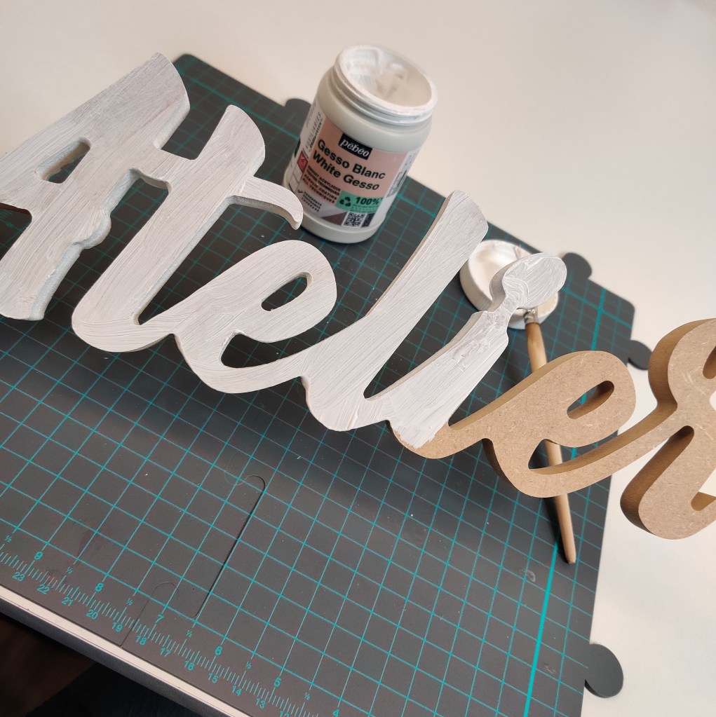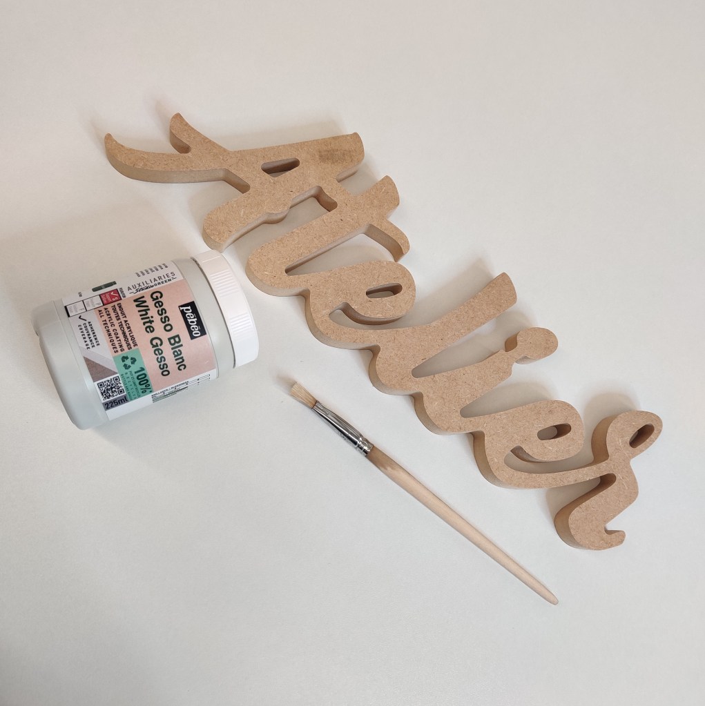 - Commencez par mettre une couche de Gesso pour préparer votre surface à recevoir la peinture!