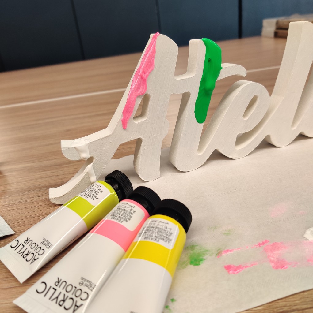 Les projets de bricolage créatifs sont une excellente manière de personnaliser votre espace de vie tout en exprimant votre créativité. Aujourd’hui, nous allons vous montrer comment transformer un simple support en bois vierge en une œuvre d’art unique à l’aide de peinture acrylique. Nous avons choisis de personnaliser le mot ATELIER