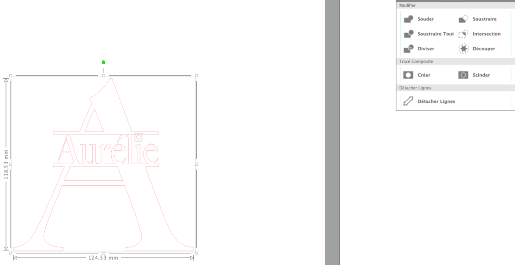 - Sélectionnez l’ensemble (le prénom et le monogramme) et, dans l’outil Modifier, cliquez sur Souder pour fusionner le tout.