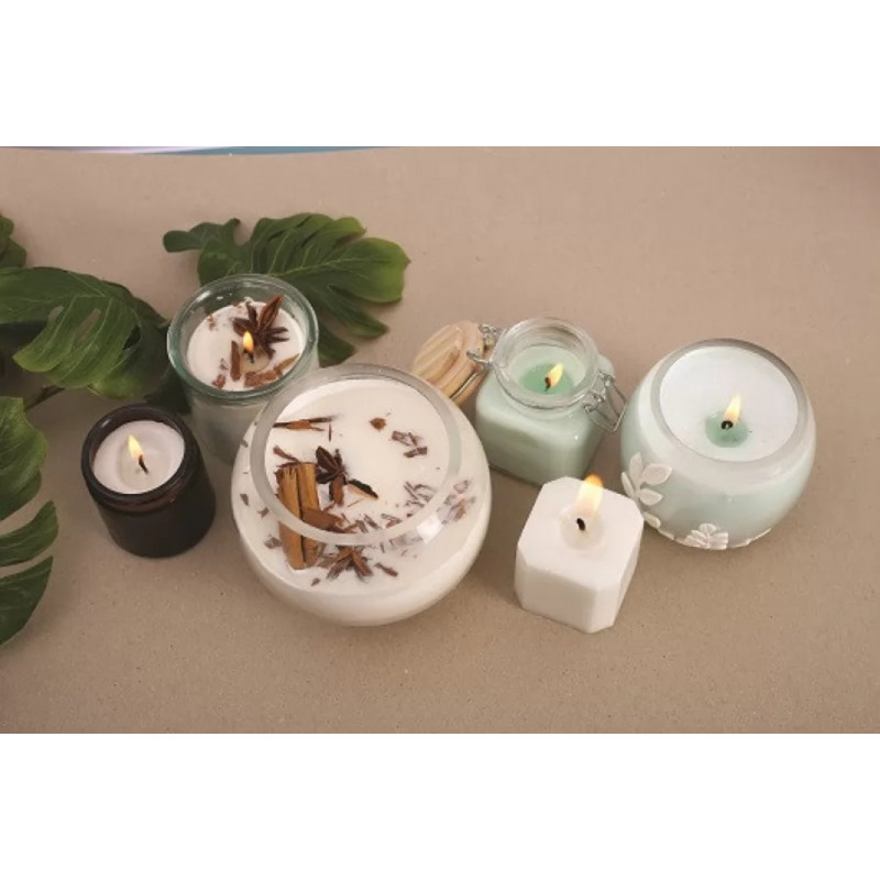 - Cires végétales et naturelles : Nous proposons des cires de qualité, comme la cire de soja ou de colza, idéales pour des créations respectueuses de l’environnement.