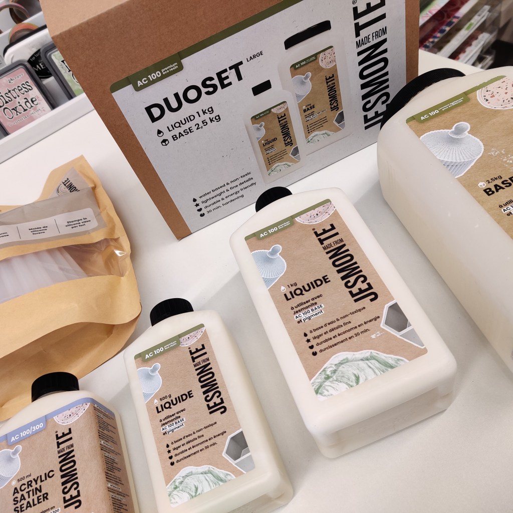 Vous pouvez trouver de la Jesmonite et tous les accessoires nécessaires sur notre site, La Fourmi Créative. Nous proposons des kits complets, parfaits pour débuter, ainsi qu’une large sélection de moules, de pigments et de cristaux pour donner vie à vos idées.