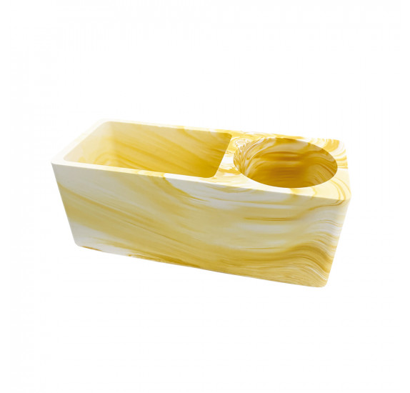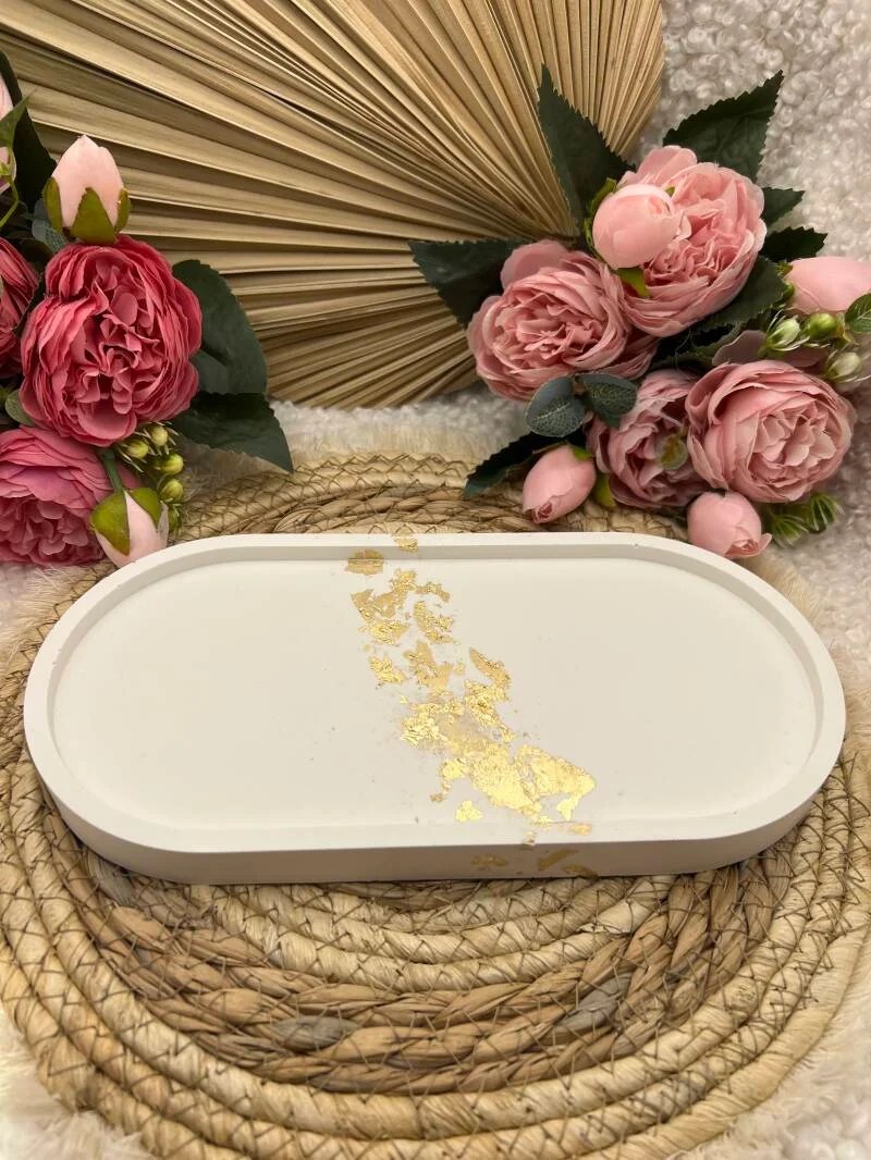 La Jesmonite peut être utilisée pour réaliser une variété d’objets : des petits bijoux, des plateaux, des pots de fleurs, des bougeoirs, et même des sculptures. Elle peut être teintée avec des pigments, mélangée avec des agrégats (comme du sable ou des éclats de verre) ou travaillée pour des textures originales. - Durabilité et légèreté