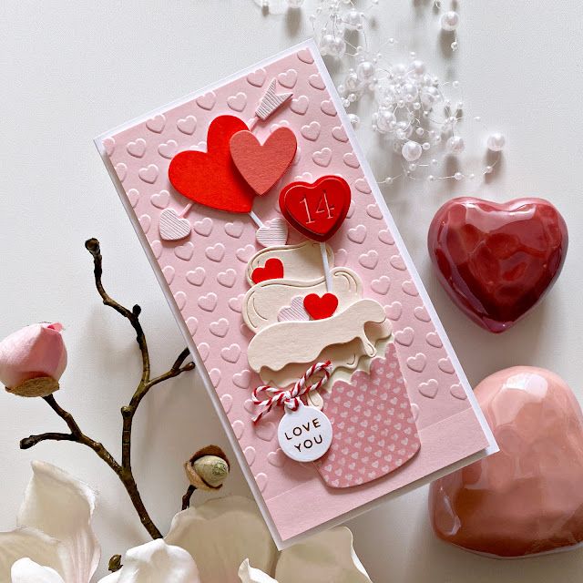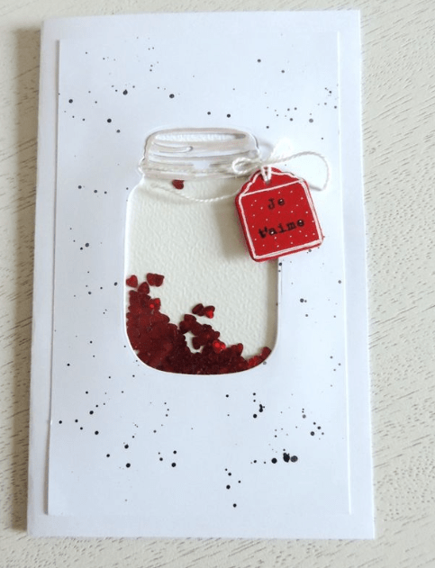 2. Carte « Bocal d’amour » avec des cœurs flottants