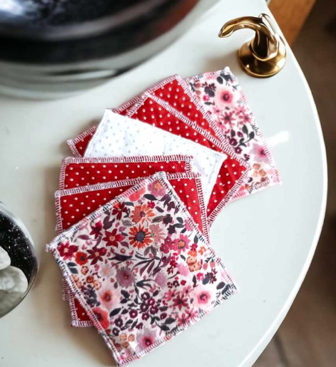 Un classique du zéro déchet ! Découpez de petits carrés dans un tissu éponge et un tissu imprimé coton. En quelques coutures, vous obtenez un lot de lingettes à offrir ou à utiliser au quotidien.