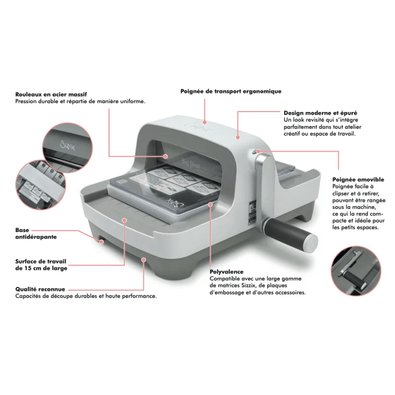 La nouvelle Sizzix Big Shot est arrivée, et elle a déjà conquis le cœur des passionnés de scrapbooking, de carterie et de loisirs créatifs ! Avec son design moderne et élégant, cette machine de découpe et de gaufrage a été repensée pour offrir encore plus de praticité, de robustesse et de performance.